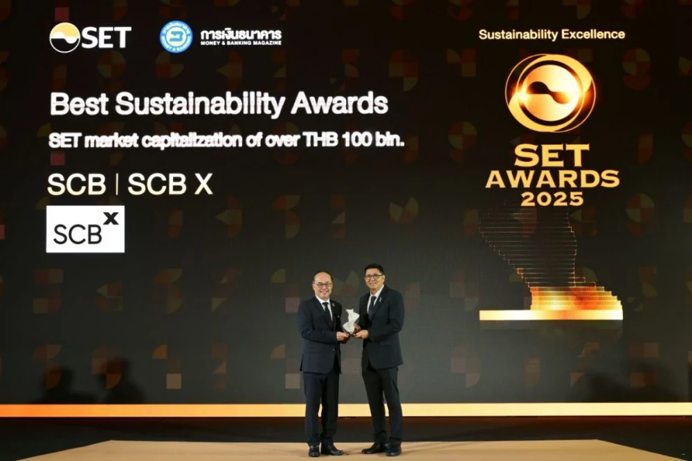 Bangkok, 3 December 2025 – SCB X Public Company Limited (SCBX), Thailand’s leading financial technology group, has been recognized with the “Best Sustainability Awards” at the SET Awards 2025, hosted by the Stock Exchange of Thailand and Money and Banking Magazine. This prestigious recognition honors listed companies that demonstrate outstanding financial performance while maintaining strong responsibility toward stakeholders and successfully embedding Environmental, Social, and Governance (ESG) principles into their business strategies for sustainable growth.